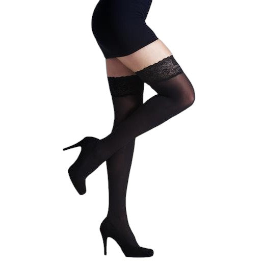 Body: Experience the epitome of comfort and sophistication with our velvety soft 60 denier hold ups. Crafted in Italy from the finest materials, these hold ups offer a luxurious feel against your skin. The black hue adds a timeless elegance, making them the perfect accessory for any occasion.